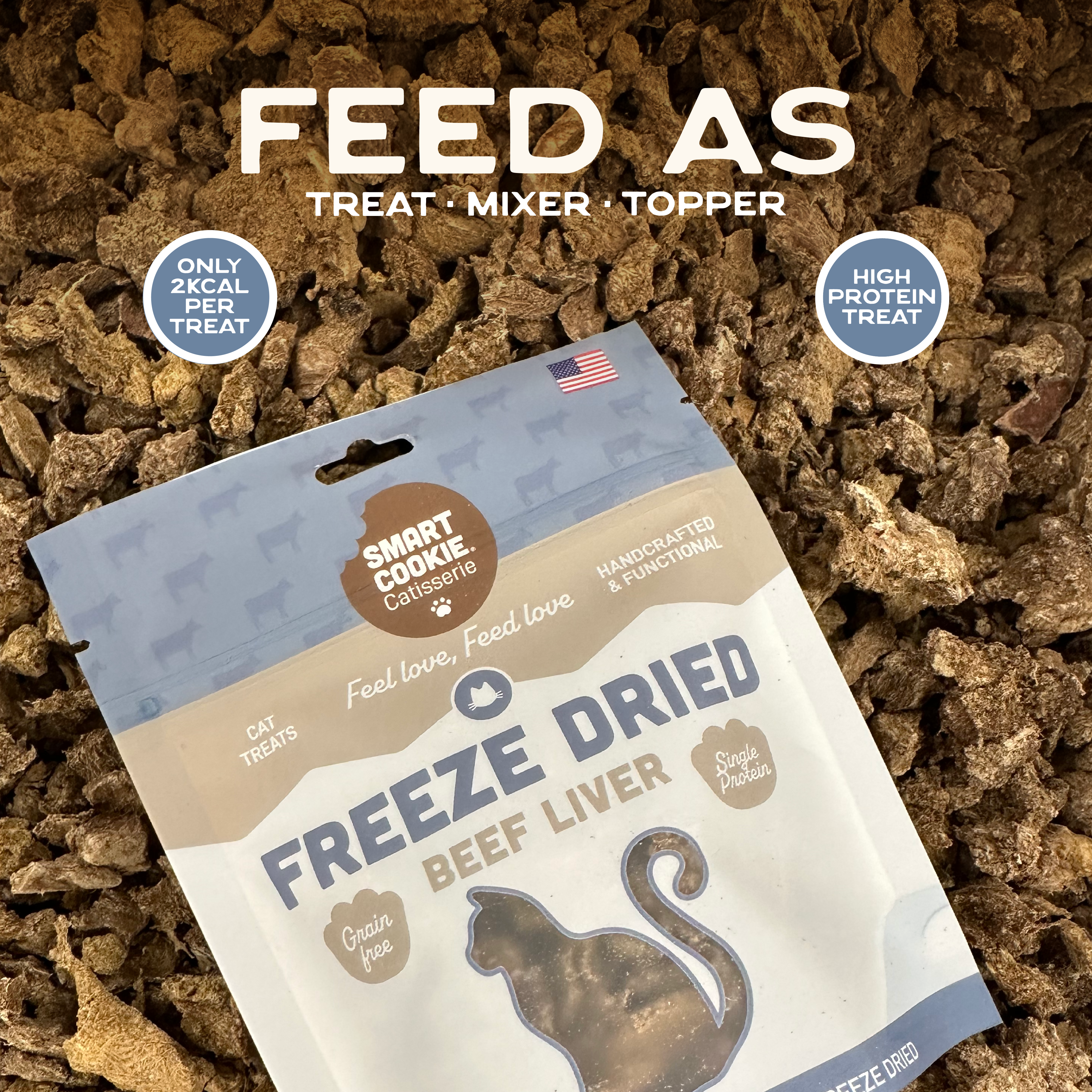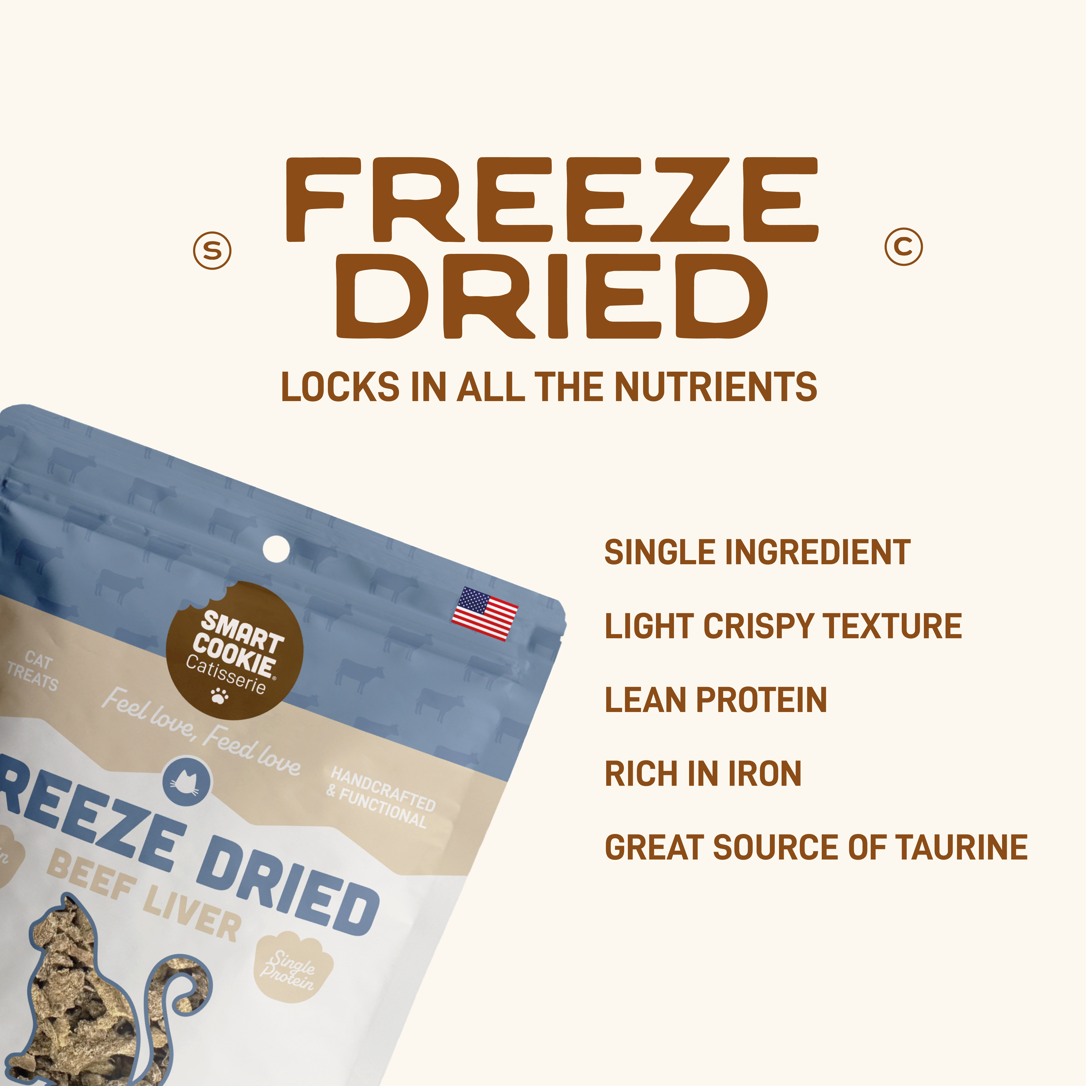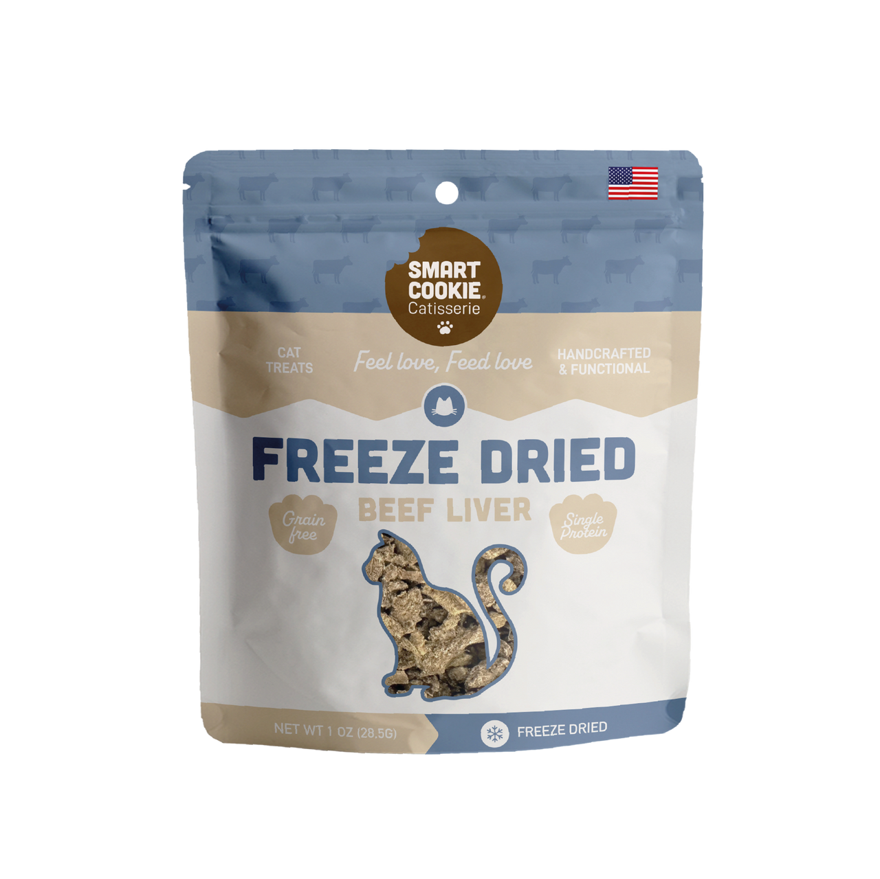 Made with 100% beef liver, these single ingredient freeze dried cat treats are rich in protein and perfect for rewarding or sharing a bonding moment. Light, crunchy, and made without fillers or additives, they offer a clean, natural way to treat. Handcrafted in the USA and feline-approved.