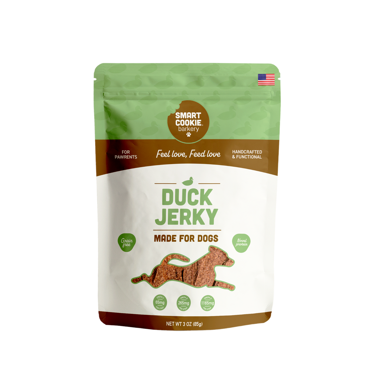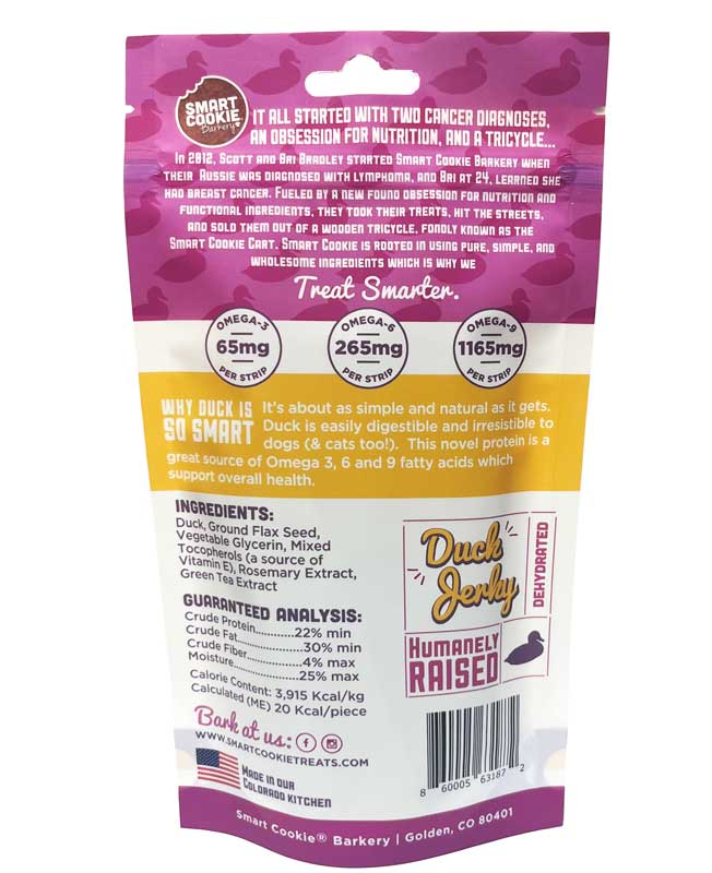 Single protein duck jerky. Grain-free and great for sensitive stomachs.