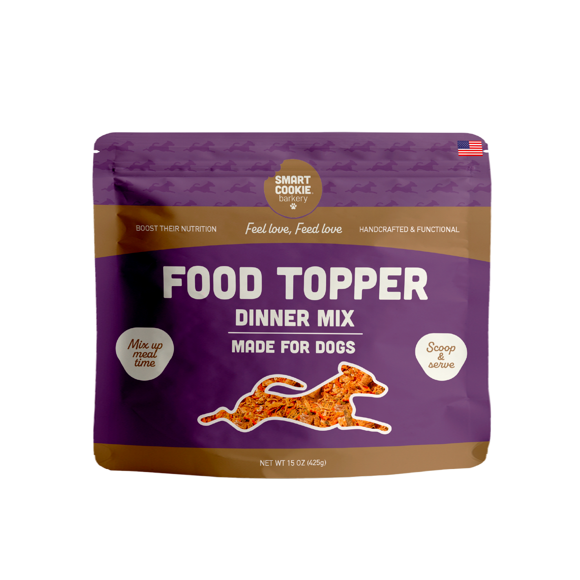 Right here in the USA, in small batches, with thoughtfully sourced ingredients. Like all Smart Cookie products, it's made with the kind of care and quality you'd expect for your own family — because that's how we see dogs, too.