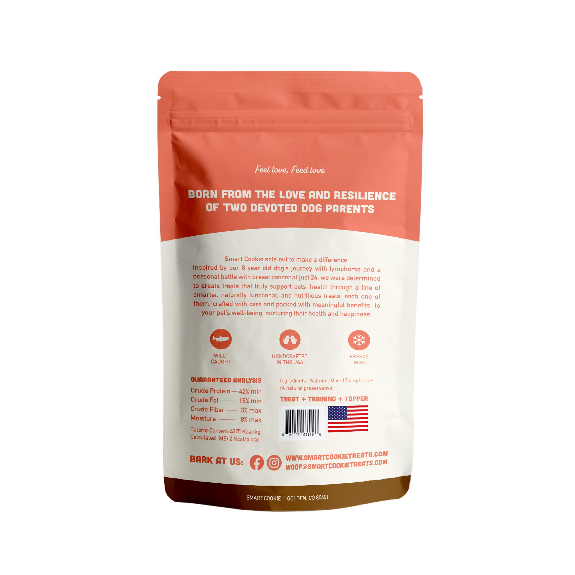 We use wild-caught salmon from trusted sources in the U.S., and each batch is handcrafted in small quantities. It's the kind of ingredient we’d feel good serving our own dogs — and yours.