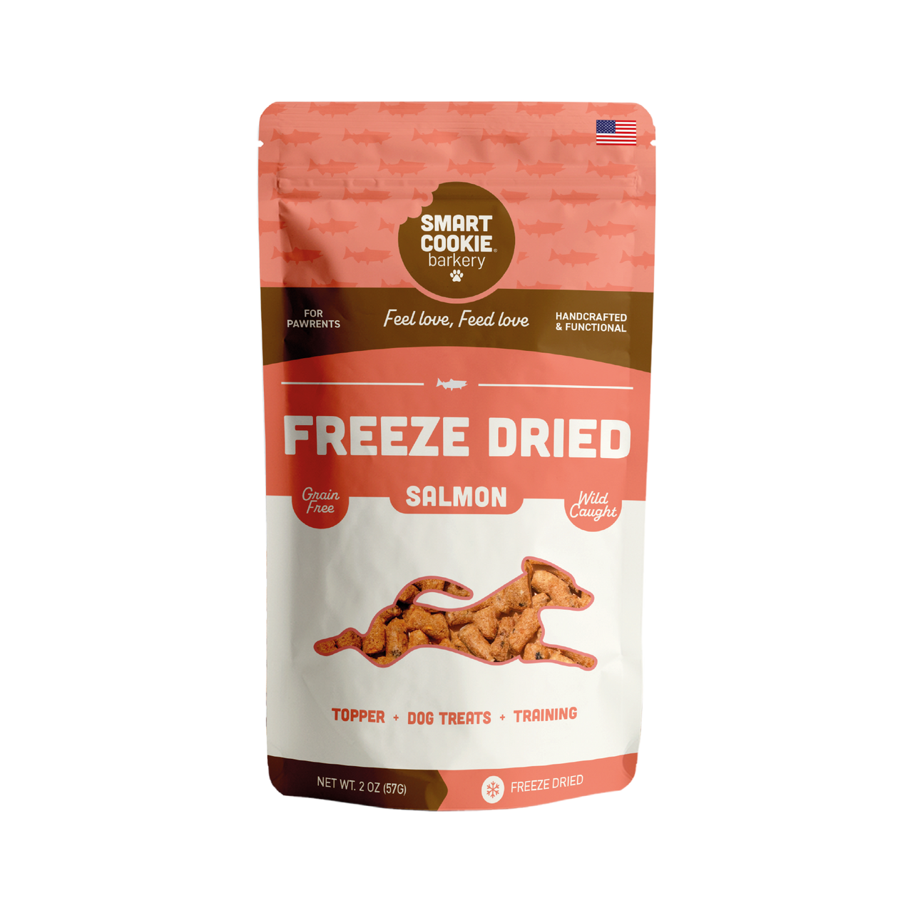 Made with wild-caught salmon, these freeze dried salmon treats for dogs are rich in protein and Omega-3s to support skin, coat, digestion, and sensitive stomachs. Naturally low in calories, made with just two ingredients, and hypoallergenic, these healthy dog treats are ideal as dog training treats, meal toppers, or daily rewards. Light, crunchy, and packed with flavor and freshness, these freeze dried fish snacks are handcrafted in the USA to fuel healthy, happy dogs—at any age.