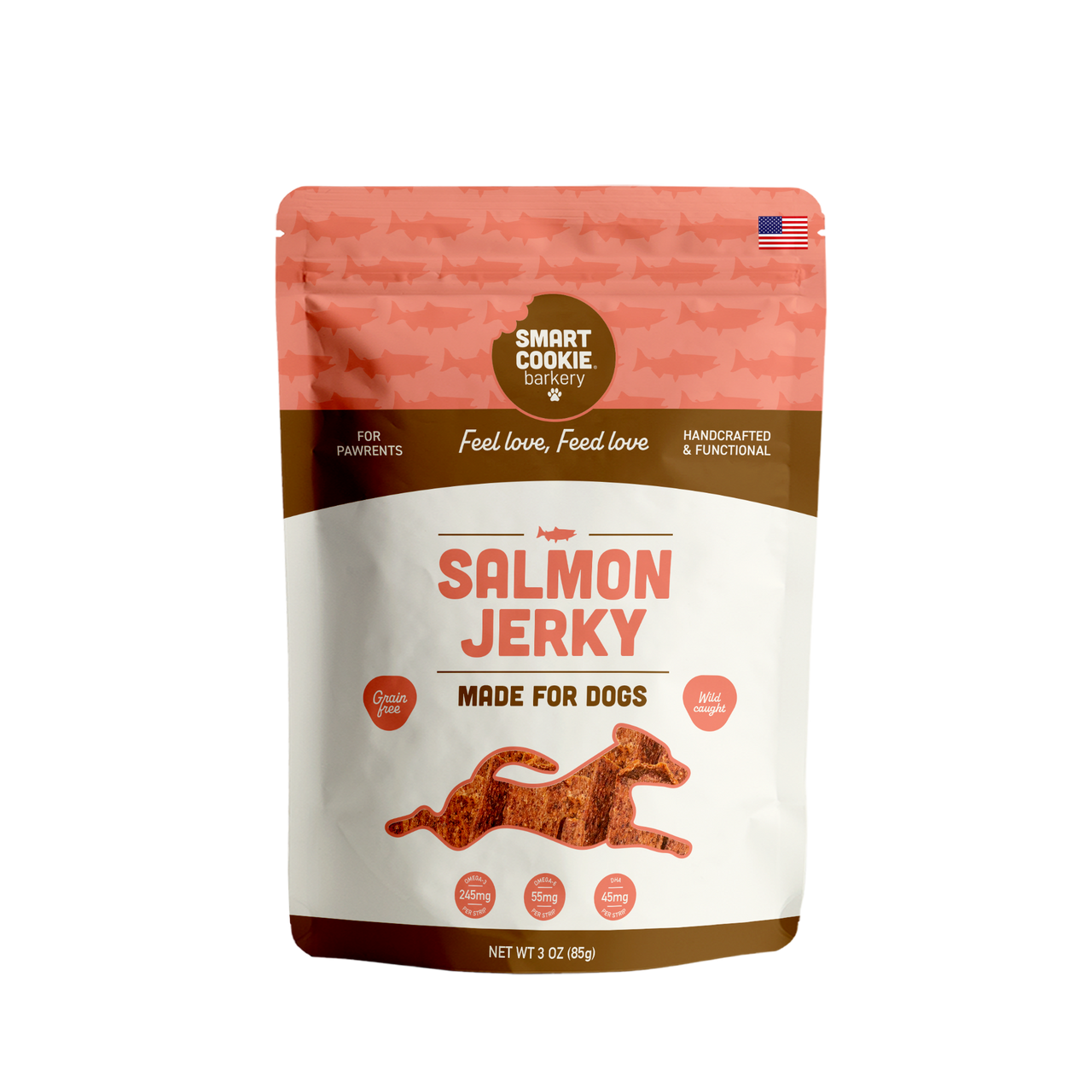 These salmon dog treats are made with real wild-caught salmon as the only animal protein. Rich in Omega 3s, grain-free, and great for dogs with sensitive stomachs. Clean, limited-ingredient jerky handcrafted in small batches in the USA. Perfect for training, rewarding, or topping meals.